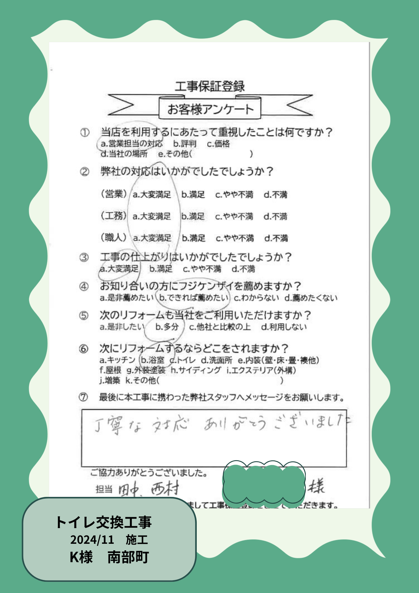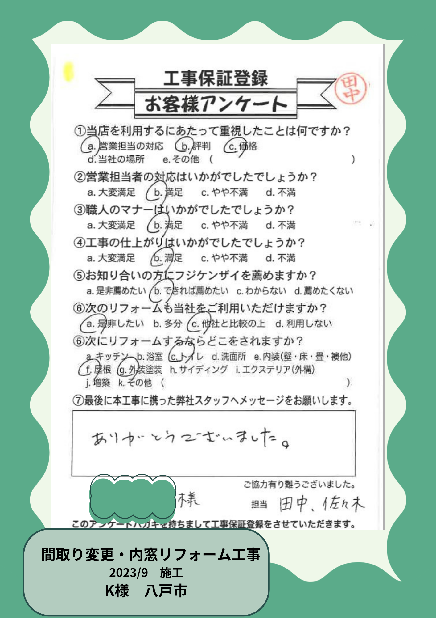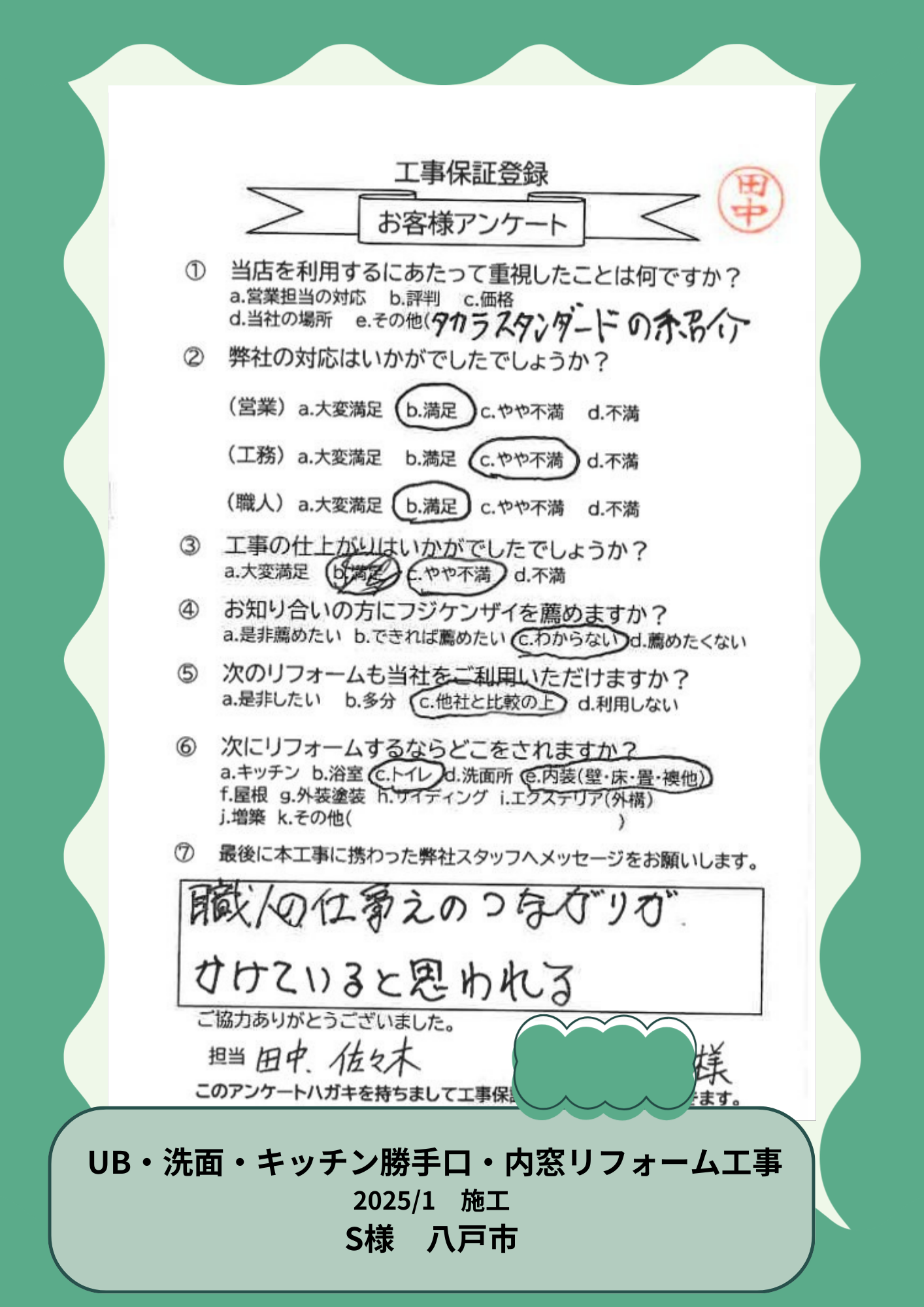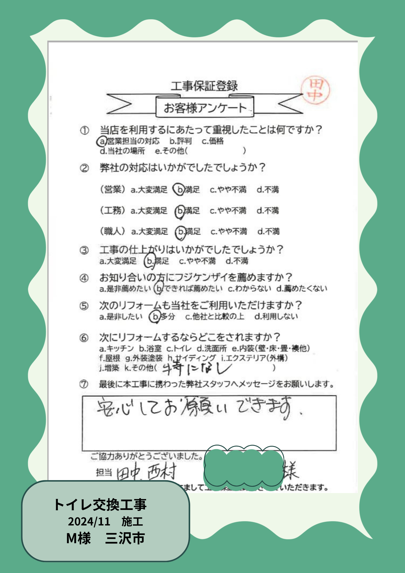 お客様の声を大事にしています!