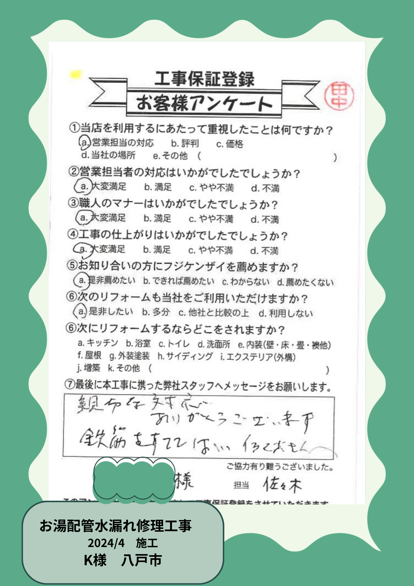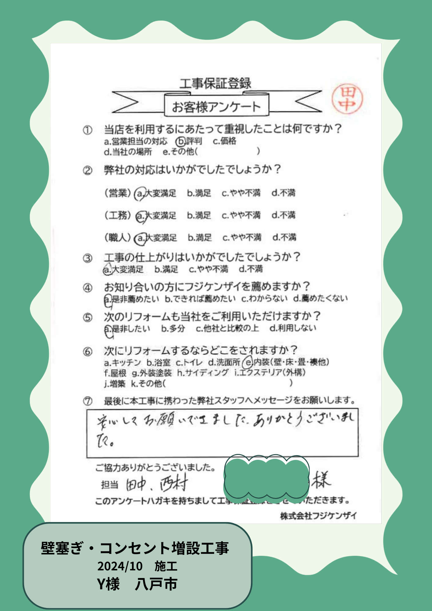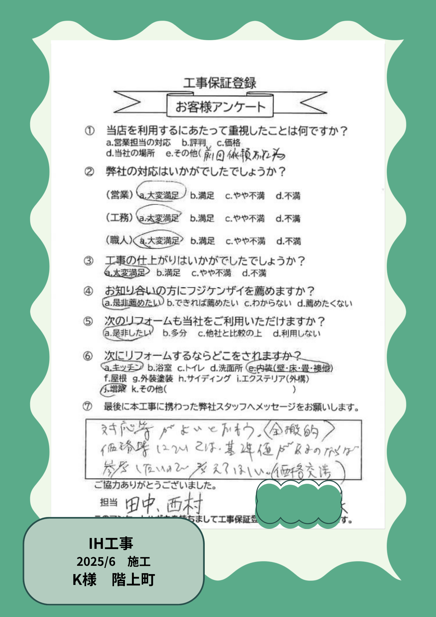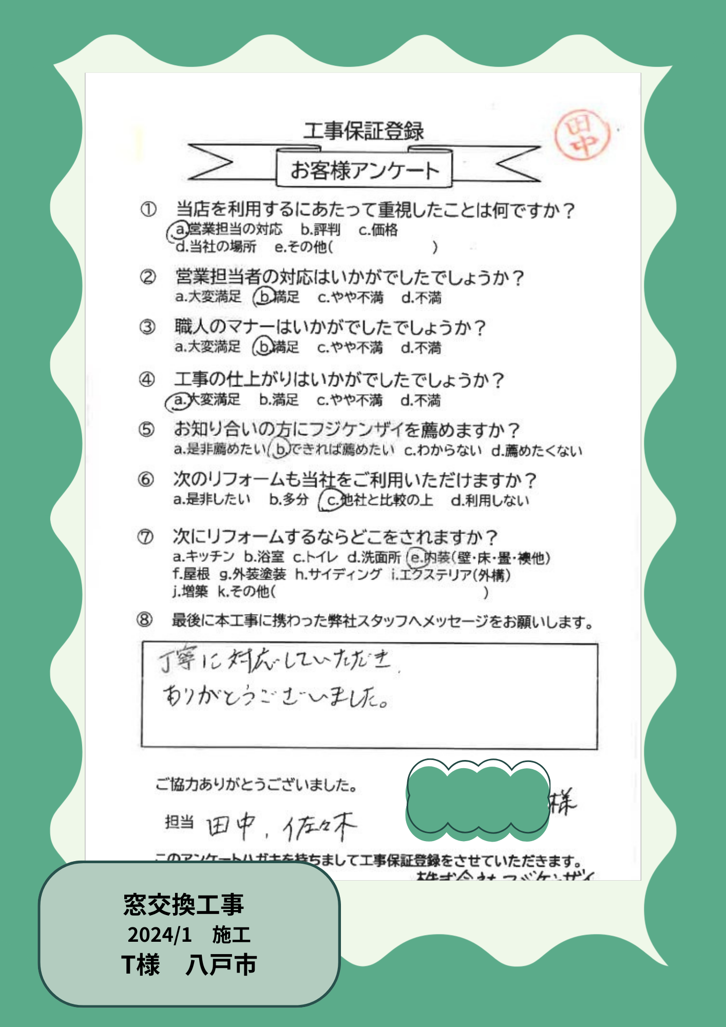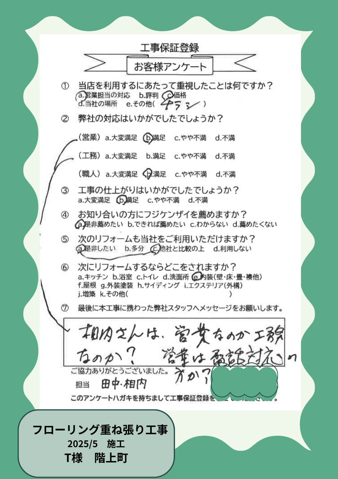 お客様の声を大事にしています!
