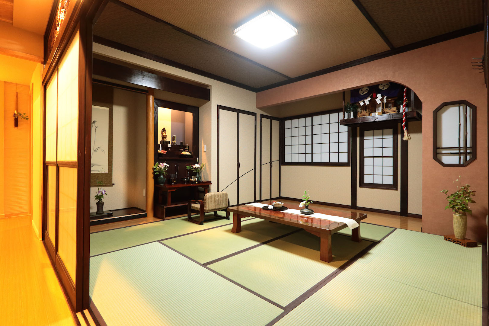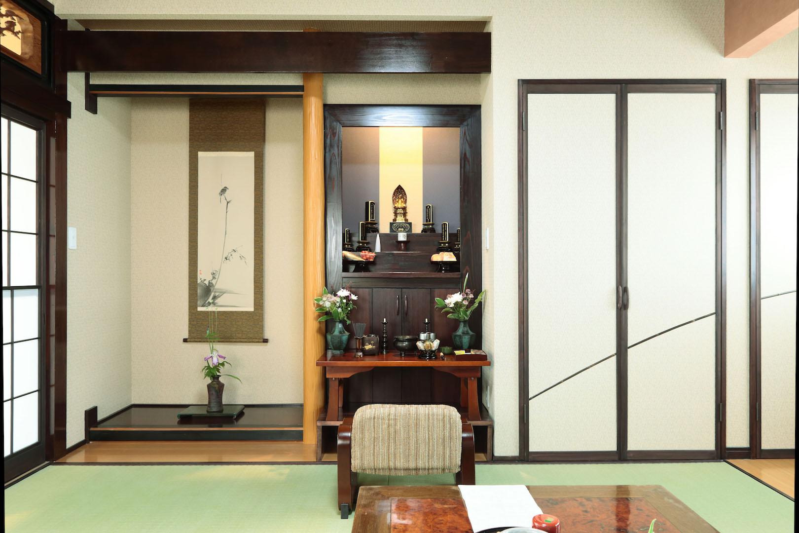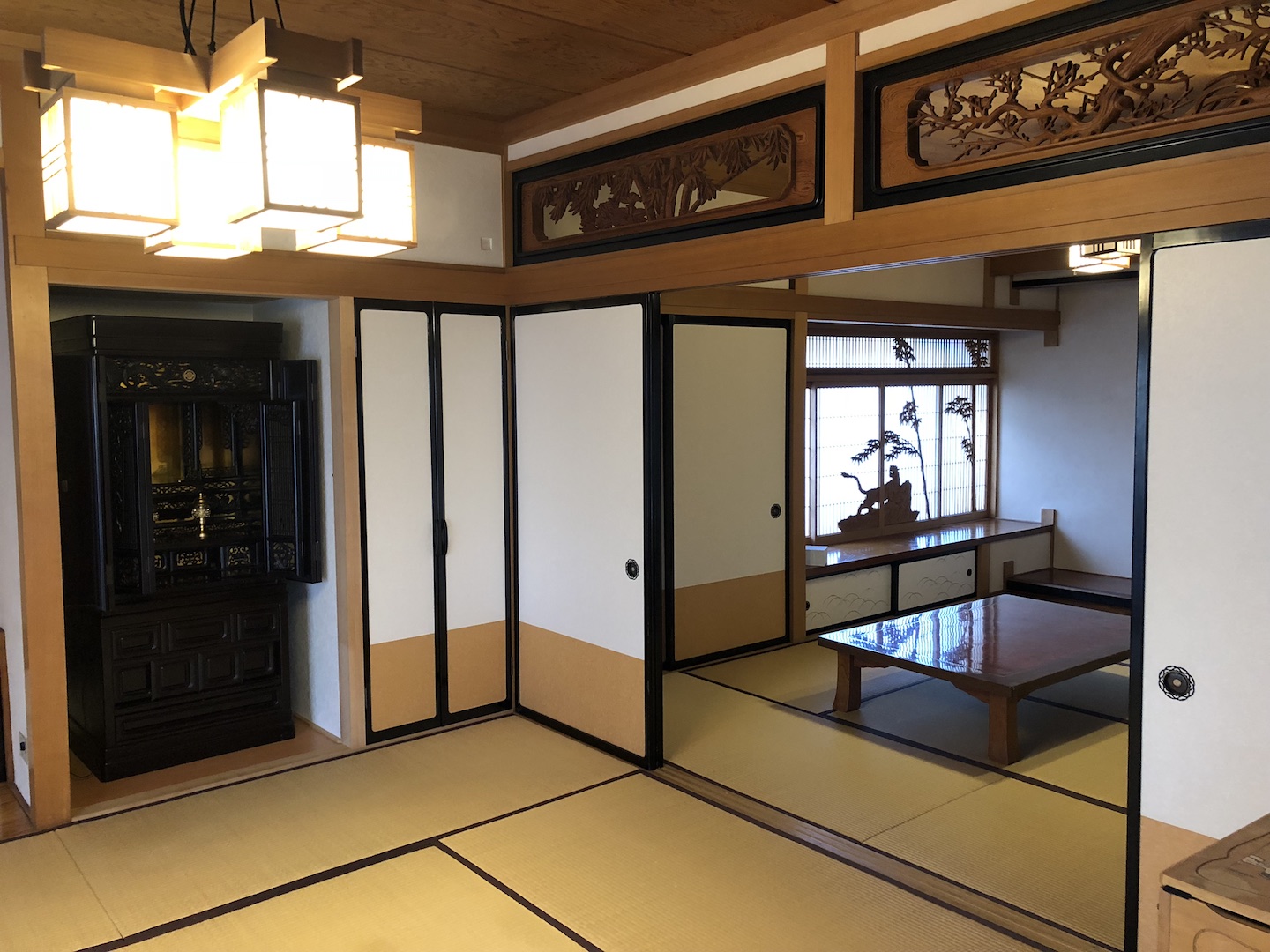 ▲暗くなりがちな仏壇や床の間も和室も採光を計算して