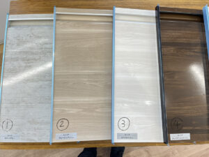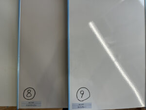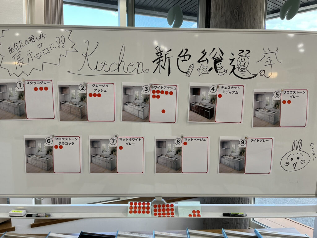 弊社のメーカー担当者よりそのお話を聞いたとき、ふと疑問に思ったのが『お客様はどの色が好きなんだろう?八戸でのトレンドカラーはなんだろう?』というものでした。そこで!8月に開催したOB様感謝祭の会場に新色9色の見本を展示し、人気のカラーを調査してみました!