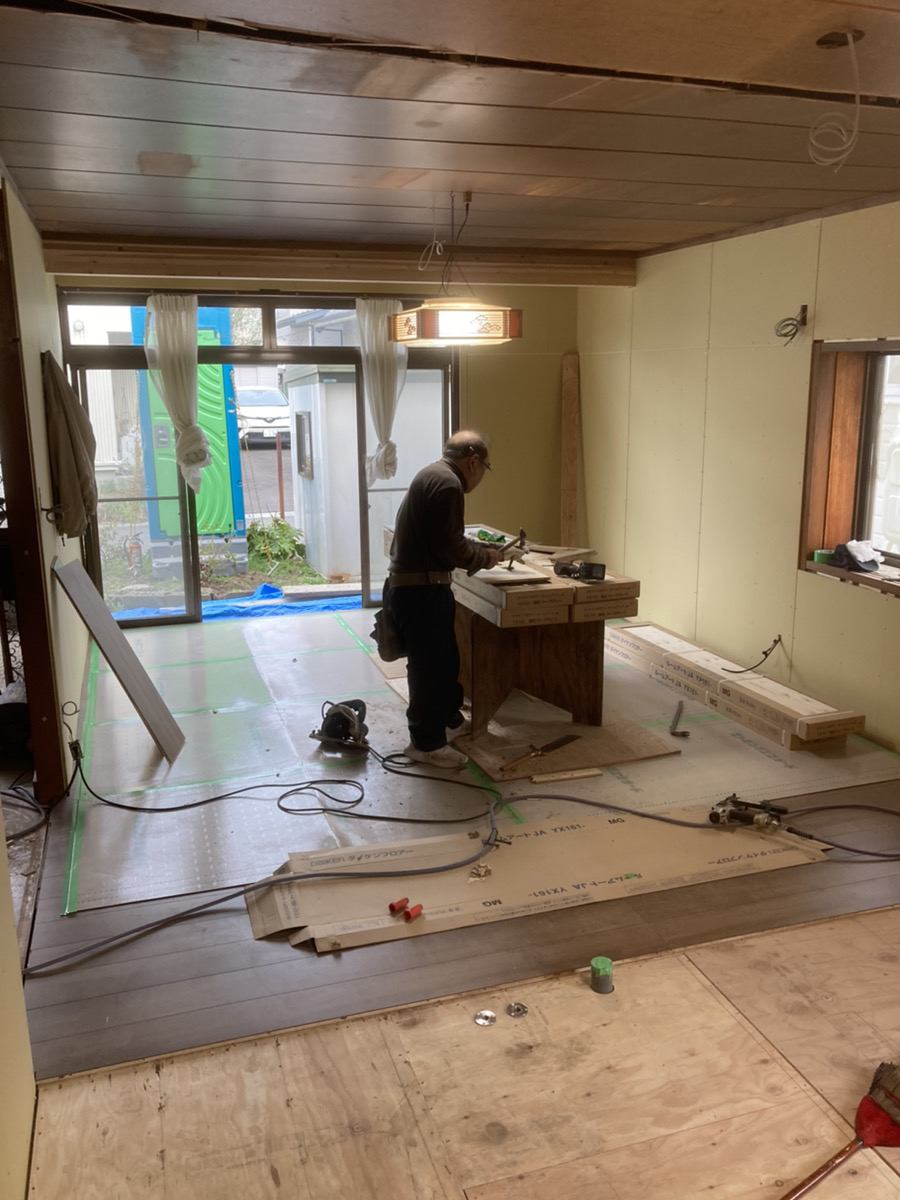 和室2間の続き部屋の仕切りと縁側を解体し、LDKの部屋を造作中です。