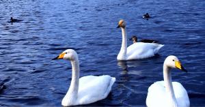 白鳥たちが越冬するためにシベリアや