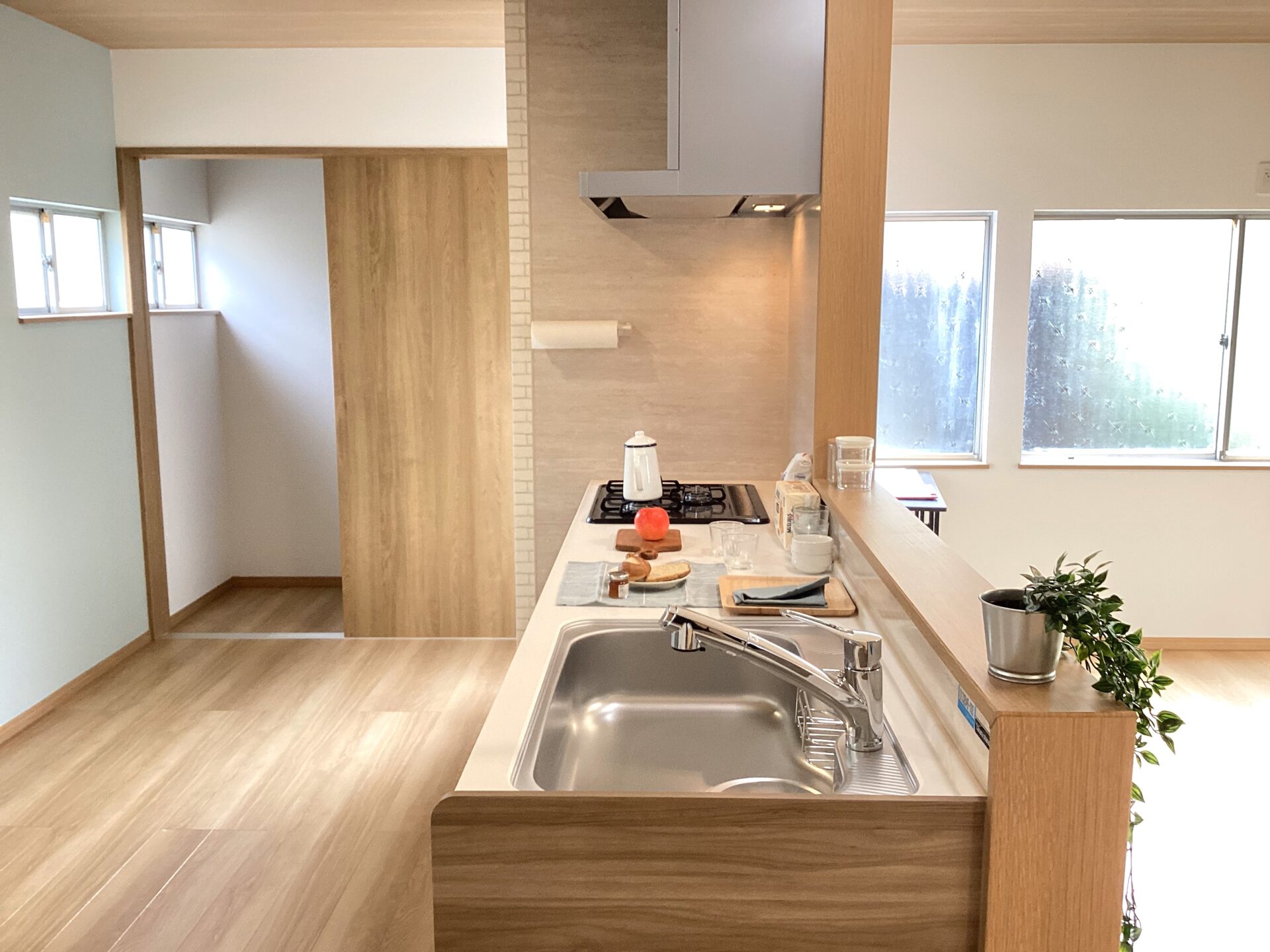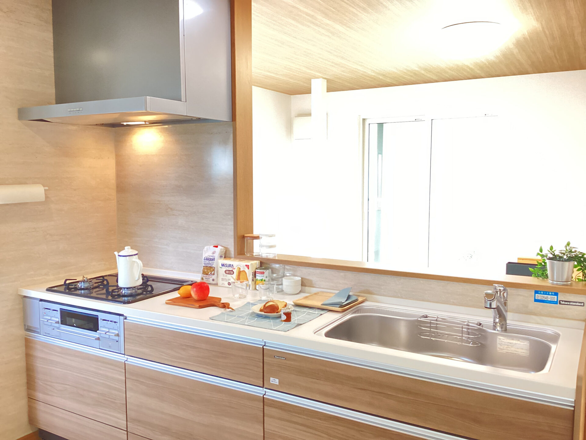 ・キッチンには「リフィット」という商品が使用されています。木製のキッチンですが、レンジフード、キャビネットの底、キッチンパネルに「ホーロー」という素材が使用されています。