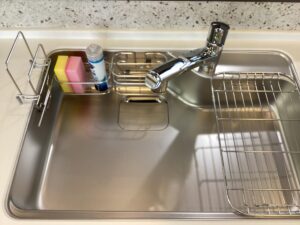 また、シンクの奥行きがあり28㎝のフライパンもまっすぐ置け、