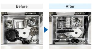 重ねていたお鍋やフライパンも、「立てる収納」で見える化すれば