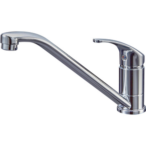 ひとつのハンドル操作で吐水・止水ができます。レバーとバルブが連動、お湯と水の通路の開閉を加減し、吐水量や湯温を調節するため、ひとつの操作で水を出したり、止めたりが可能。キッチンに多く使われています。