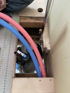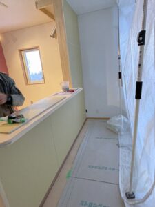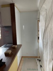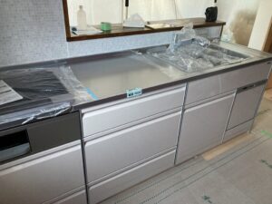 【キッチン給排水配管の逃がし工事】【キッチンカウンター塗装】