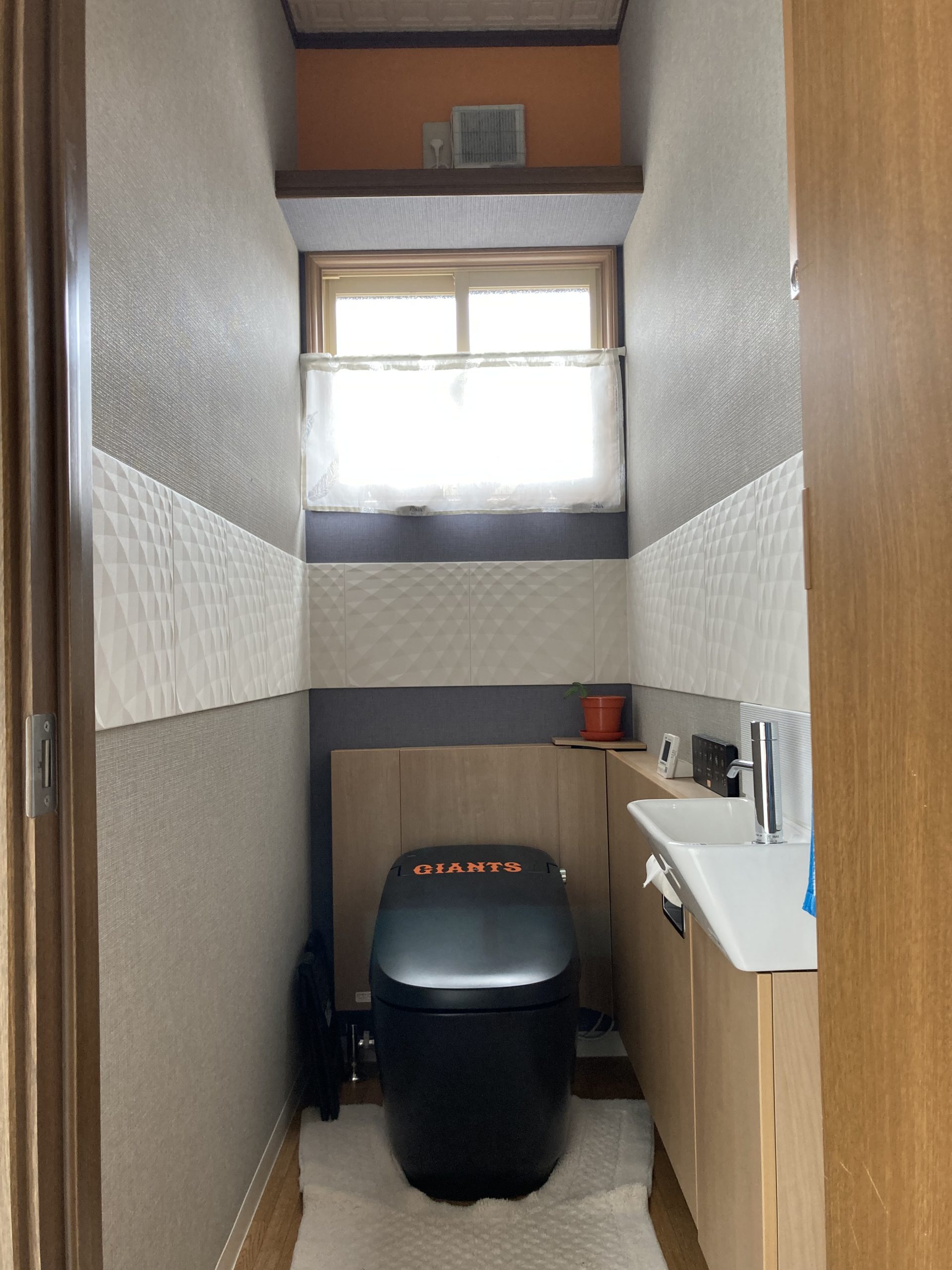 お客様は野球で熱烈な巨人ファンなので、寝室やトイレにオレンジの色を