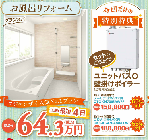 さらに、ユニットバス+壁掛けボイラーのご成約で