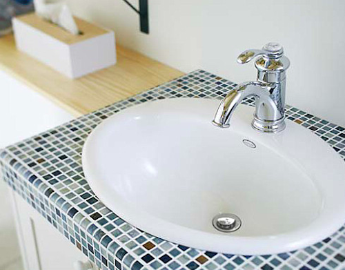 「デザイン洗面モニター」では、こうしたおしゃれな「モザイクタイル施工」を3組のお客様にプレゼント。