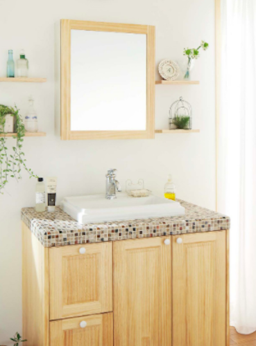 「デザイン洗面」とは、洗面ボウル、鏡、水栓、天板、下台(収納)、照明などをお好みに合わせて造るオリジナル洗面台のこと。
