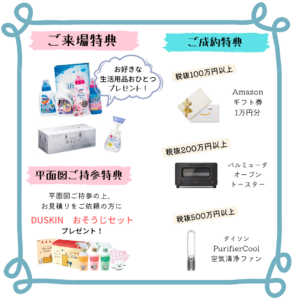 ご成約特典ももちろんございます!豪華賞品プレゼントですのでお見逃しなく😚