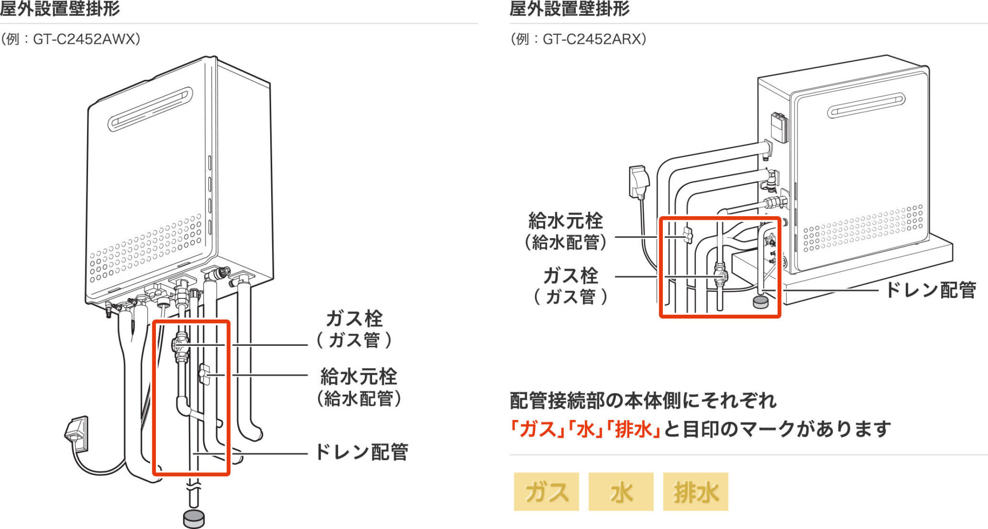 給湯器の栓の箇所の図