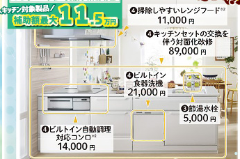 キッチンでは「③エコ住宅設備の設置」と「④子育て対応改修」が対応します。