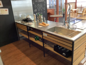フレームキッチンには引き出しがなく、棚板の様な作りとなっているため