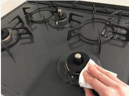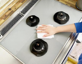 バーナーキャップを取り外し、歯ブラシで大きな汚れを取りましょう。取外しができない部分は、薄めた中性洗剤をしみこませた布で汚れを拭きとってください。汚れが多いときには、取り外せるパーツを、重曹と水を合わせたものにつけ置きし、数分後に拭き取りましょう。