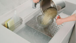ホーローは水に強い素材のため、ぬれたままのお鍋やザルなどを