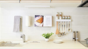ホーローはマグネットがくっつくので、壁全体を収納として使え、