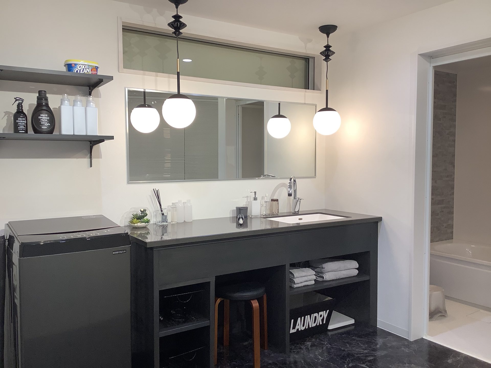 スタイリッシュ且つクールな印象をもちつつ、存在感がありますのでデザイン洗面をより引き立ててくれるタイルとなっております。