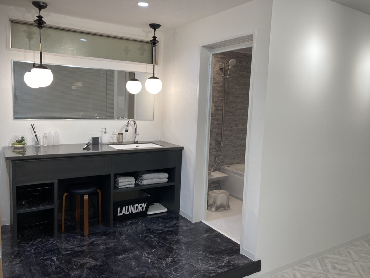 照明にも力を入れて、様々なタイプの照明を取付、1坪・1.5坪の洗面室があります。