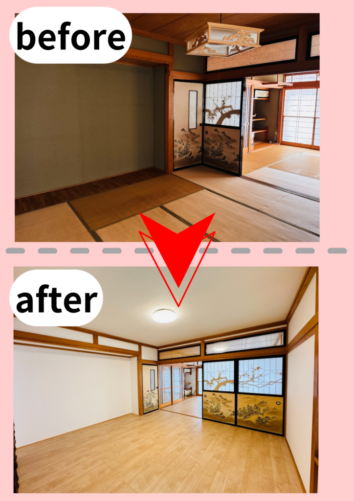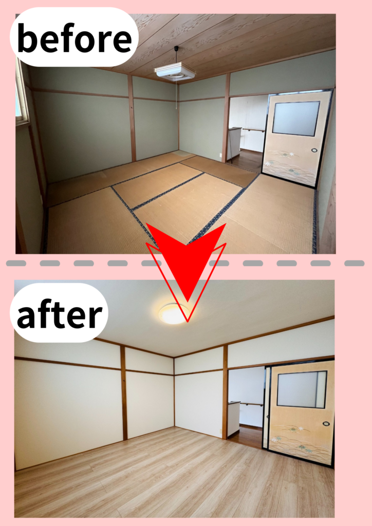1Fの2部屋が畳でしたが、フローリングにしたことで自由な家具配置・お手入れなどが手軽に出来るようになりました。