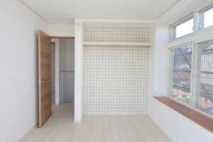 かつては襖で隔てていただけの二部屋でしたが、間仕切りの壁を新設し、完全なる「部屋」として確立しました。