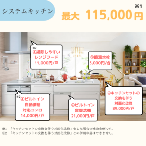 ※キッチンセットの「移設」による対面化改修は対象となりません。