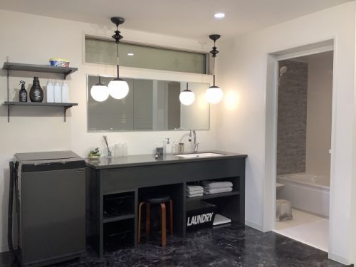 そんなおしゃれカフェをお手本に考えたいのが、洗面所の照明プラン。