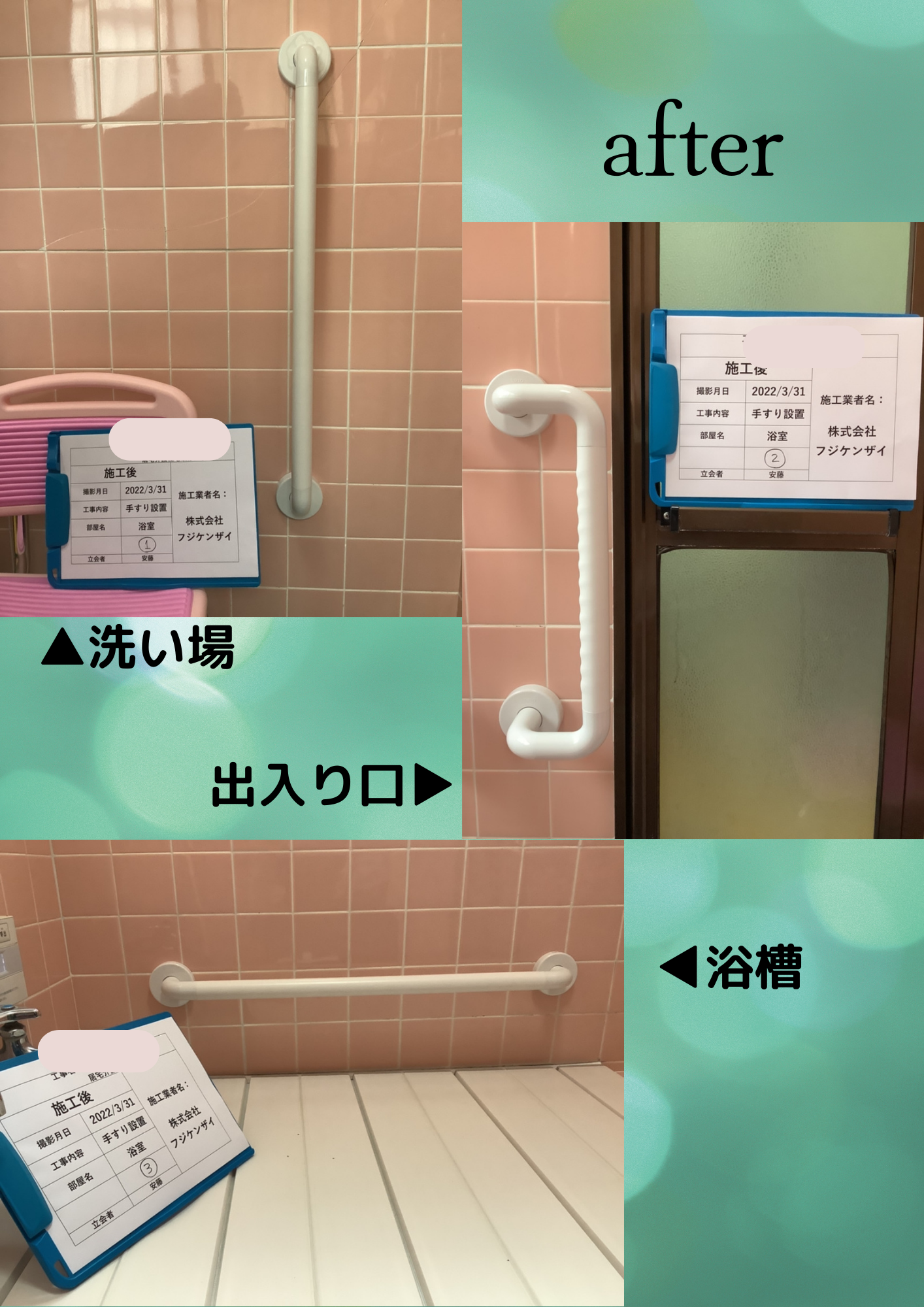 工事内容:浴室手すり取付工事(3ヵ所)