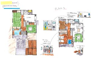 お客様のイメージやご要望を、具現化し共有するために、フジケンザイでは、手書きのプランも作成しています。