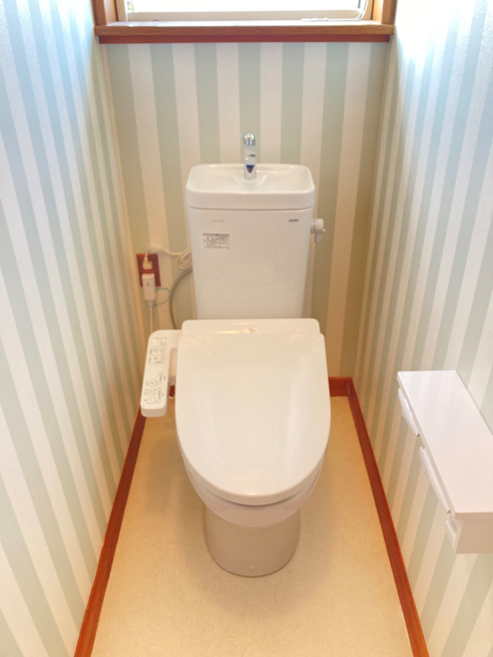 「メインで使わないから…」と後回しにしてしまいがちな2階トイレのリフォーム。経年劣化による汚れや、古くなった壁紙など、気になる点はたくさんありますよね。今回のリフォームでは、トイレ交換はもちろん、手洗い撤去、壁紙・床材の張替えを行い、まるで新しいトイレができたかのような、清潔感あふれる空間に生まれ変わりました。ご依頼いただきありがとうございました!