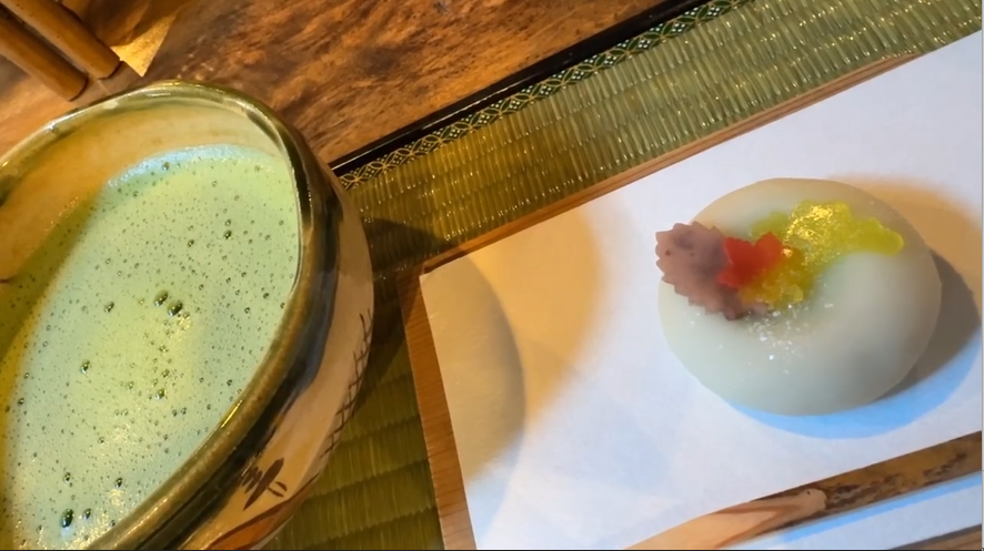 食後のデザートには、抹茶+和菓子のセットを食べました。店員さんの茶の立て方が滑らかで、カウンター席からまじまじと見てしまいました ^^) _旦~~ 和菓子の甘さが引き立つお茶でした。「結構なお点前で〜」また食べに行きたいです。