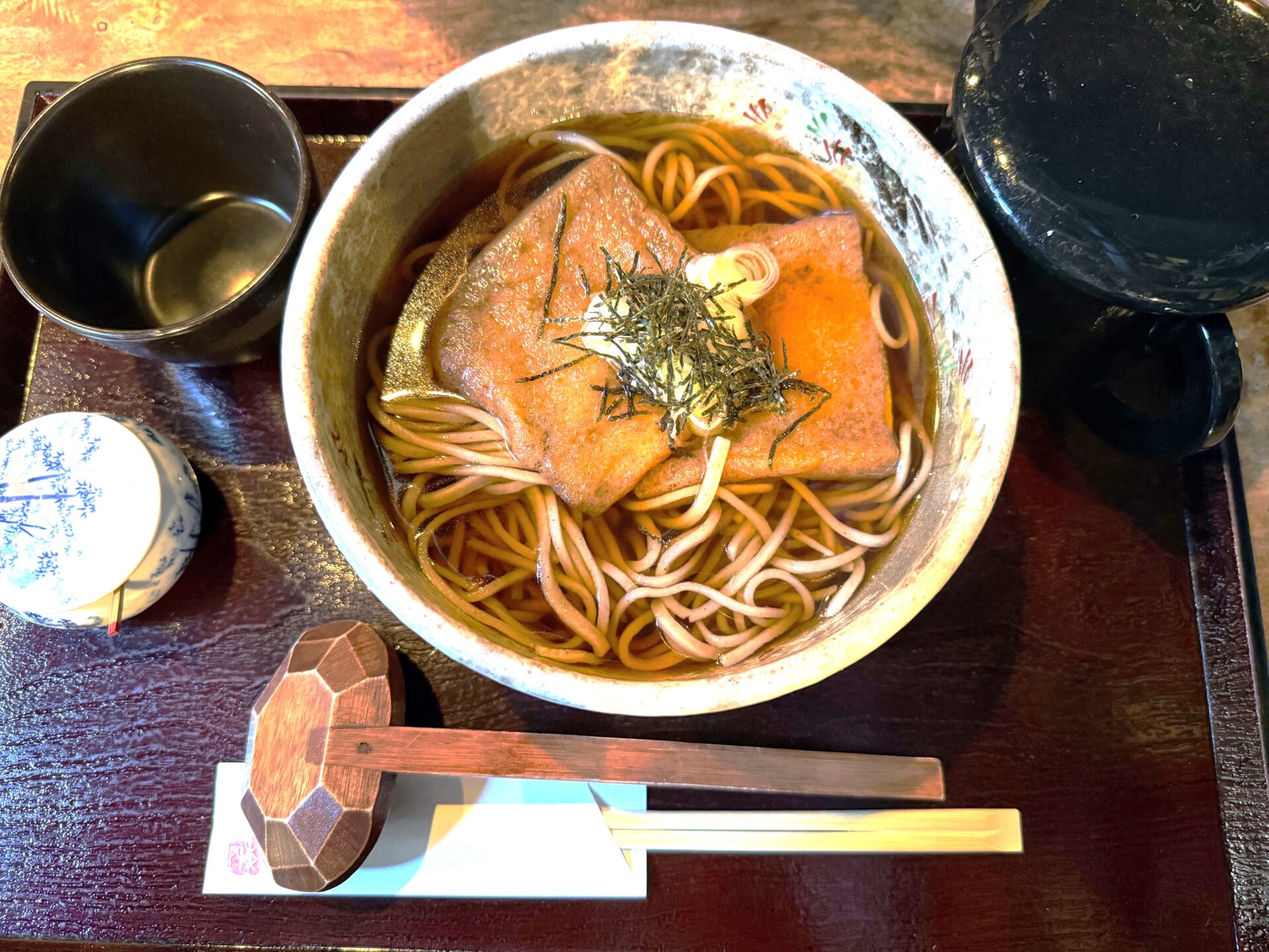 はらがへってはなんとやら、まずは探検前にはらごしらえをしたい。ということでやってきたのは、階上岳の麓付近にあるお蕎麦屋さん。和の印象が強いお店の外見ですが、店内に入ると、オーディオからジャズが流れ、ライブ用機器が揃っていました。和と洋が調和していてとても落ち着きます。