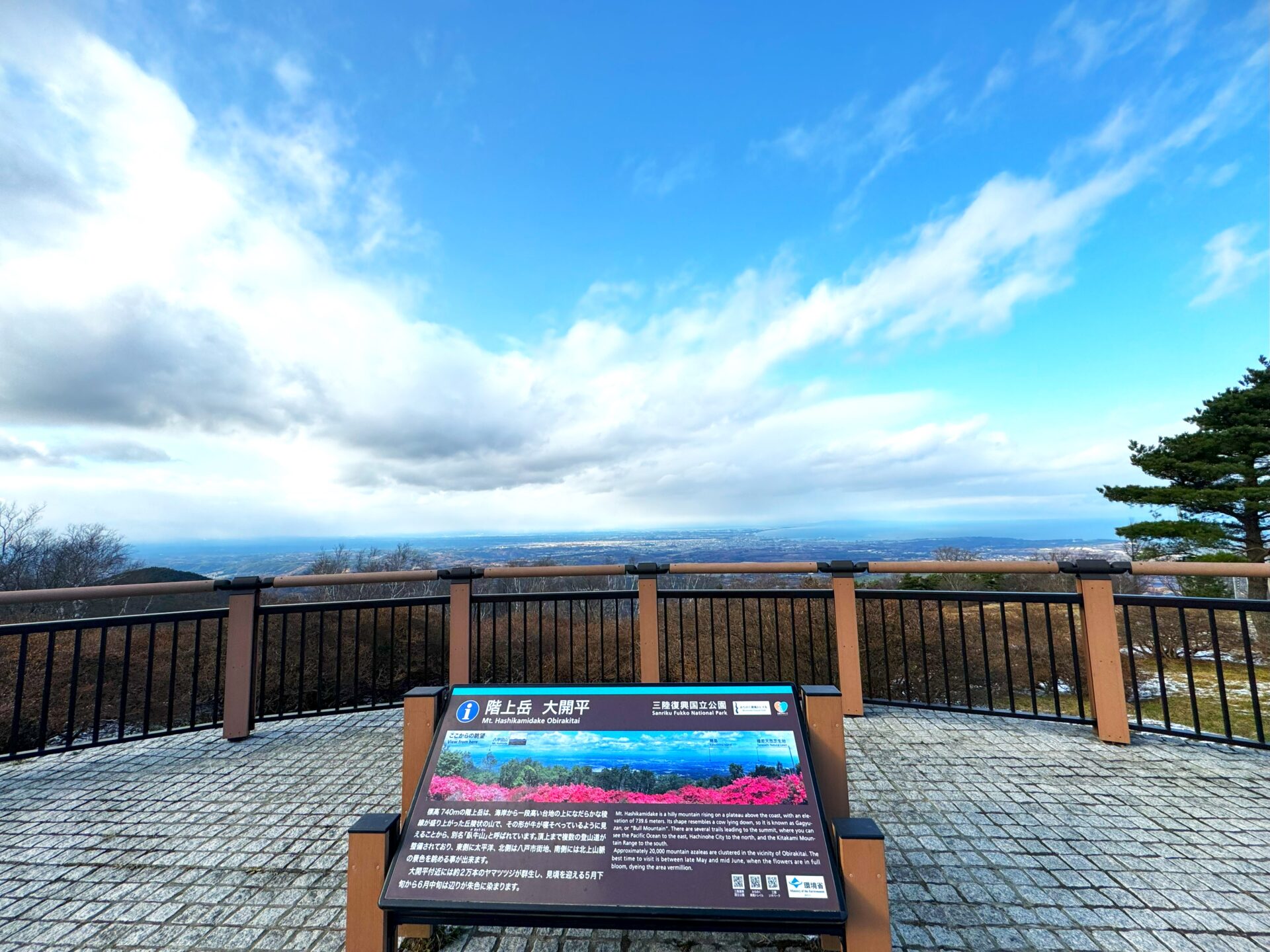 雲が手すりのアーチと線対象に近い形になっており、その境界線が地平線という芸術点が高い写真を撮影出来ました。寒かったですがその分澄んだ景色でした。ここから山頂へ行けるようですが、「ある~ひ、もりの~なか、くまさ~んに、であ~った」となりたくないので、ツツジが咲くころにまた来ようと思います。