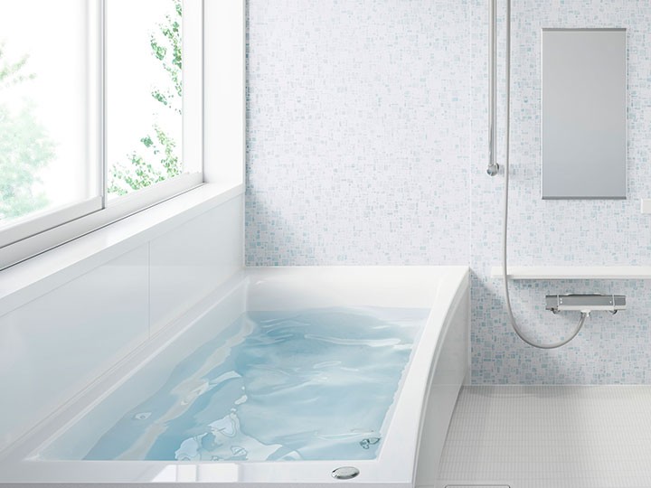 壁面や天井の素材になります。表面がガラス質だから汚れに強く、カビをガード!とても固いので傷つきにくくお手入れがラクラ ク!マグネット収納で自由自在にレイアウト外気を遮断しつつ、浴室内の熱をキープしてくれるので冬場でも結露しにくく快適空間です
