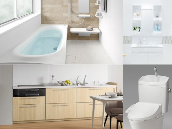 コスパ最強!水廻り4点の住宅設備の入れ替え 【キッチン】ミッテI型・【ユニットバス】サザナ1坪・【トイレ】ピュアレストQR【洗面台】Vシリーズ